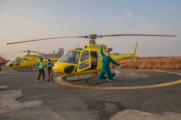 In the morning we take you to the airport for a helicopter flight